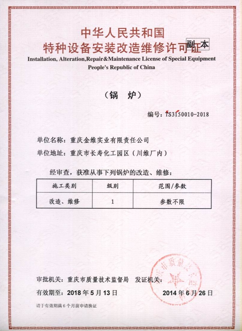 鍋爐維修、改造許可-重慶金維實(shí)業(yè)有限責任公司-重慶金維實(shí)業(yè)有限責任公司