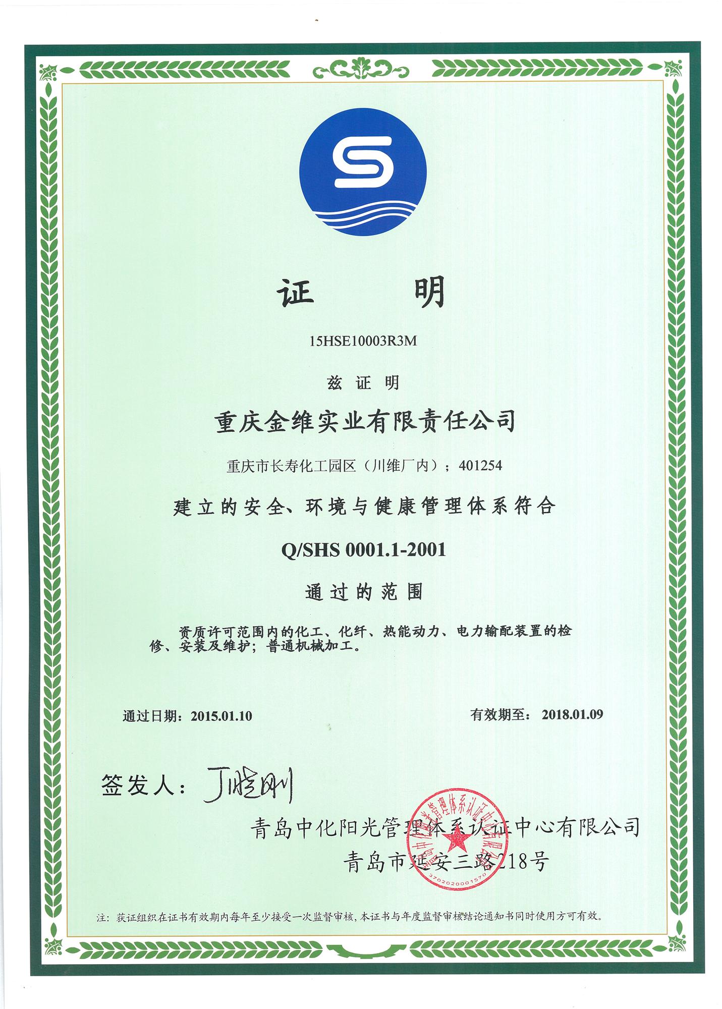 職業(yè)健康安全證書(shū)-重慶金維實(shí)業(yè)有限責任公司-重慶金維實(shí)業(yè)有限責任公司
