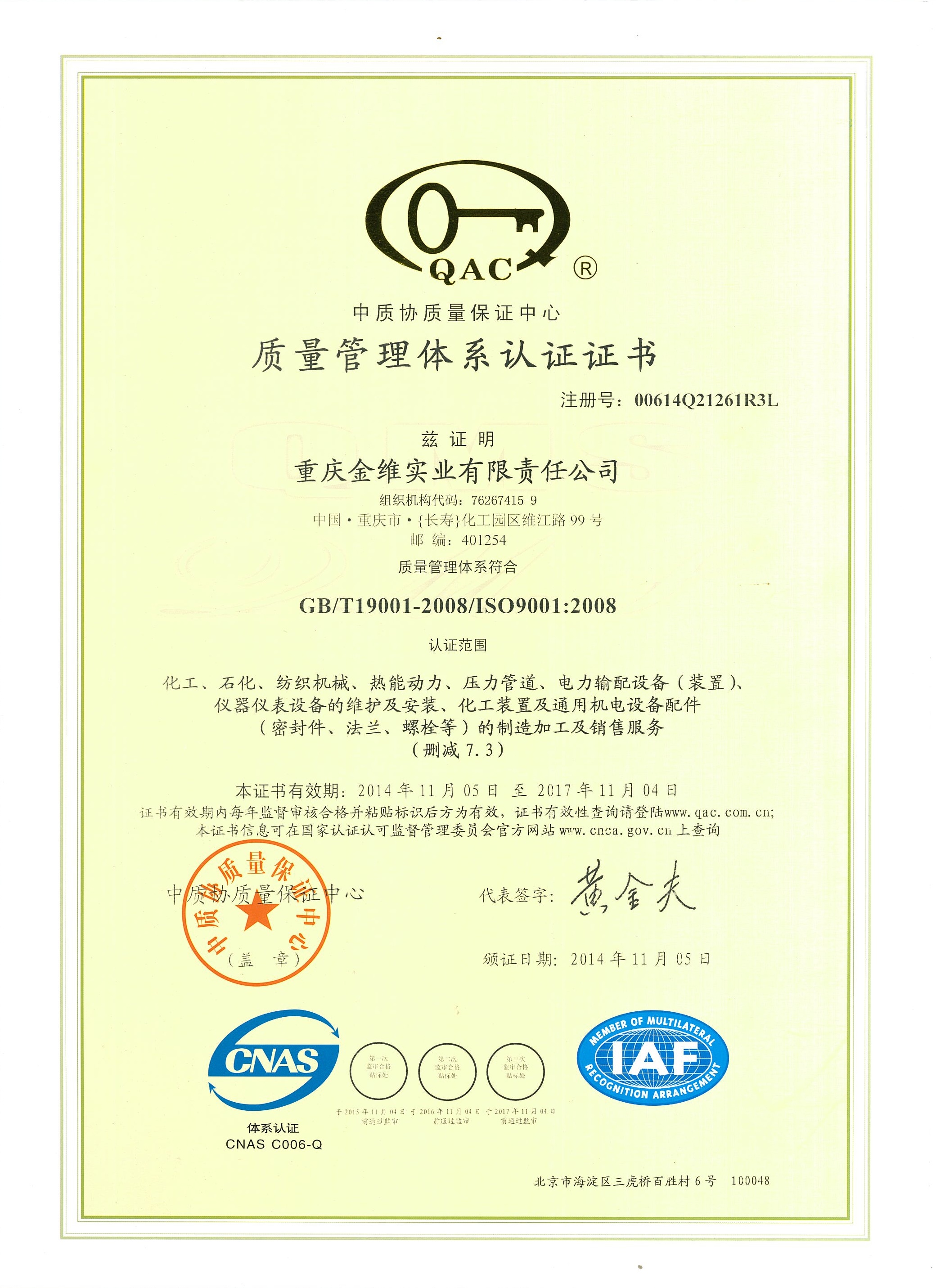 質(zhì)量體系-重慶金維實(shí)業(yè)有限責任公司-重慶金維實(shí)業(yè)有限責任公司